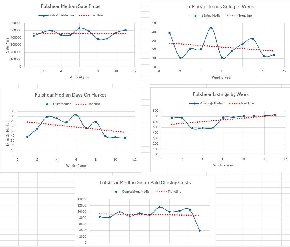 14 homes closed this week in Fulshear, from 13 last week (↑ 7.7%).