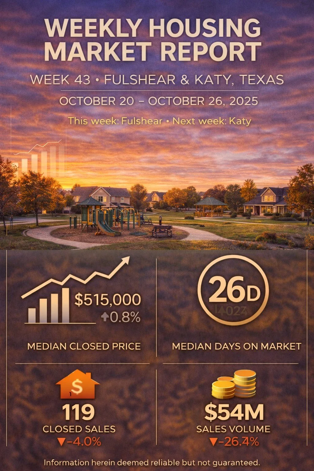 Weekly Housing Market Report – Katy & Fulshear – Week 43 October 20 – October 26, 2025