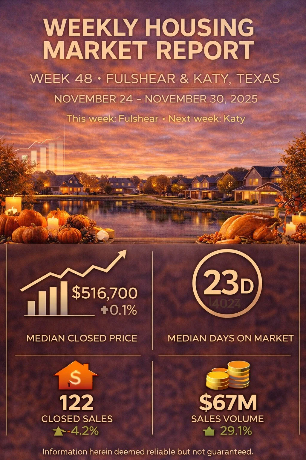 Weekly Housing Market Report – Katy & Fulshear – Week 48 November 24 – November 30, 2025